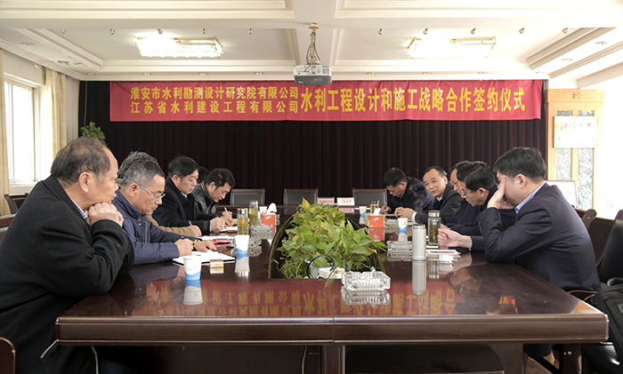 3月23日,水建公司、水機公司分別與淮安市水利勘測設(shè)計研究院有限公司簽署戰(zhàn)略合作協(xié)議,淮水院總經(jīng)理吳昌新、省工勘院有限公司董事長宋意勤、公司董事長時愛祥、水機公司總經(jīng)理鐘衛(wèi)華等10多位領(lǐng)導(dǎo)、專家出席簽約儀式。